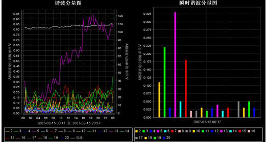 系統(tǒng)能監(jiān)測(cè)各通道多達(dá)50次諧波和50次間諧波含量、幅值、角度、功率等數(shù)據(jù),并進(jìn)行本地和數(shù)據(jù)庫(kù)存儲(chǔ),隨時(shí)進(jìn)行調(diào)出以表格或曲線方式進(jìn)行分析。