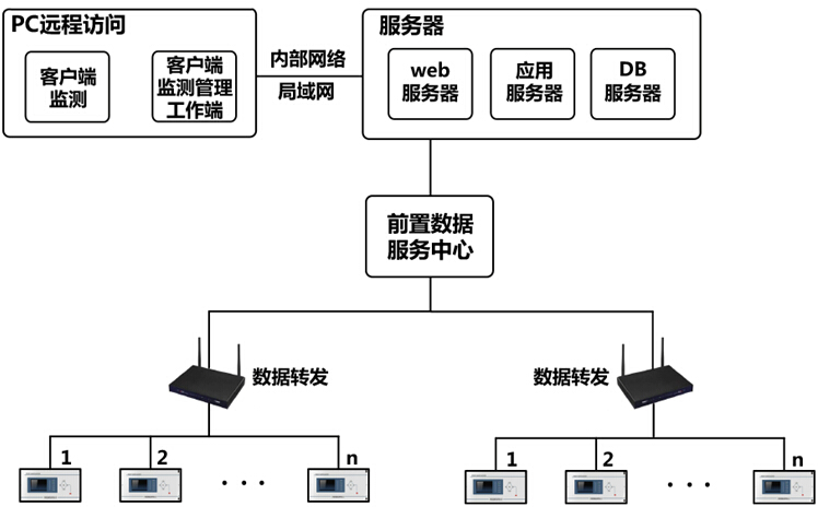 該系統(tǒng)由逐點(diǎn)電能質(zhì)量在線監(jiān)測(cè)裝置、前置服務(wù)數(shù)據(jù)集中采集器(完成實(shí)時(shí)數(shù)據(jù)服務(wù)、歷史數(shù)據(jù)服務(wù))、若干點(diǎn)電能質(zhì)量觀測(cè)工作站、遠(yuǎn)程WEB 服務(wù)器等部分組成。系統(tǒng)配合有強(qiáng)大的電能質(zhì)量數(shù)據(jù)分析軟件。實(shí)現(xiàn)電能質(zhì)量數(shù)據(jù)分析、統(tǒng)計(jì),計(jì)算、報(bào)表生成、歷史數(shù)據(jù)查詢以及電能質(zhì)量錄波事件查詢等功能。